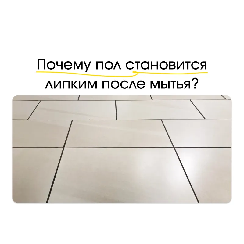 Проблема с КПАВ/ЧАС. При использовании дезинфицирующих средств на основе четвертичных аммонийных соединений на полу образуется тонкая антимикробная плёнка. Она не смывается сама по себе и со временем уплотняется. Со временем такая плёнка начинает активно «притягивать» пыль и грязь, создавая эффект липкости. Поэтому средства с ЧАС обязательно нужно тщательно смывать после экспозиции.