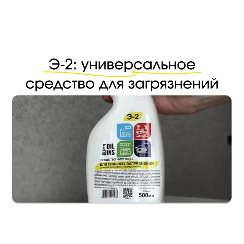 Средство Э-2 разработано для удаления особо стойких и застарелых загрязнений, таких как жир, копоть, дорожная пленка, масла и другие сложные пятна. Его нейтральная формула делает состав безопасным для большинства материалов, включая деликатные поверхности. Это универсальный очиститель, который одинаково хорошо подходит как для ежедневной, так и для генеральной уборки.