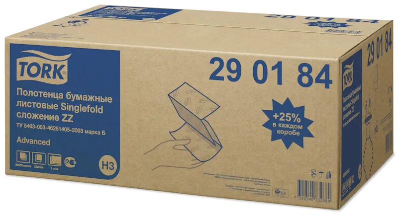 Tork листовые полотенца Singlefold сложения ZZ удовлетворяют потребности в сушке рук и гарантируют качество в тех случаях, когда стоимость и характеристики одинаково важны. Для использования в диспенсерах торк для листовых полотенец Singlefold сложения ZZ и С, прекрасном решении для туалетных комнат с высокими требованиями к гигиене. Полистовой отбор позволяет контролировать расход полотенец и обеспечивает высокий уровень гигиены.
