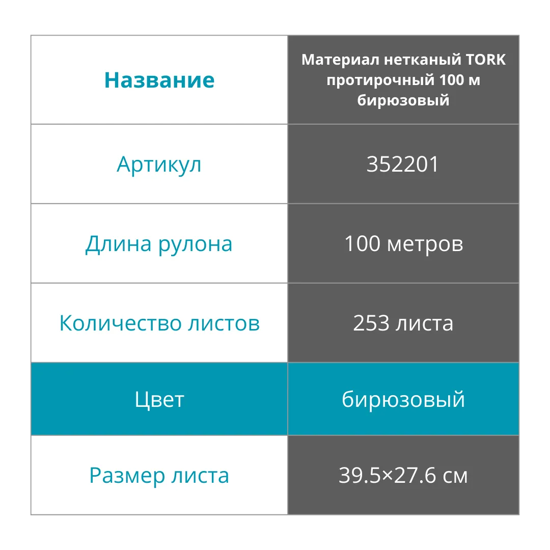 Бирюзовый цвет материала обеспечивает легкость контроля за степенью загрязнения и позволяет своевременно заменить использованный материал на новый. Нетканый материал от TORK – это качественный и надежный помощник в процессе уборки, который поможет сэкономить время и усилия, а также обеспечит высокий уровень чистоты и гигиены на вашем предприятии или в быту.