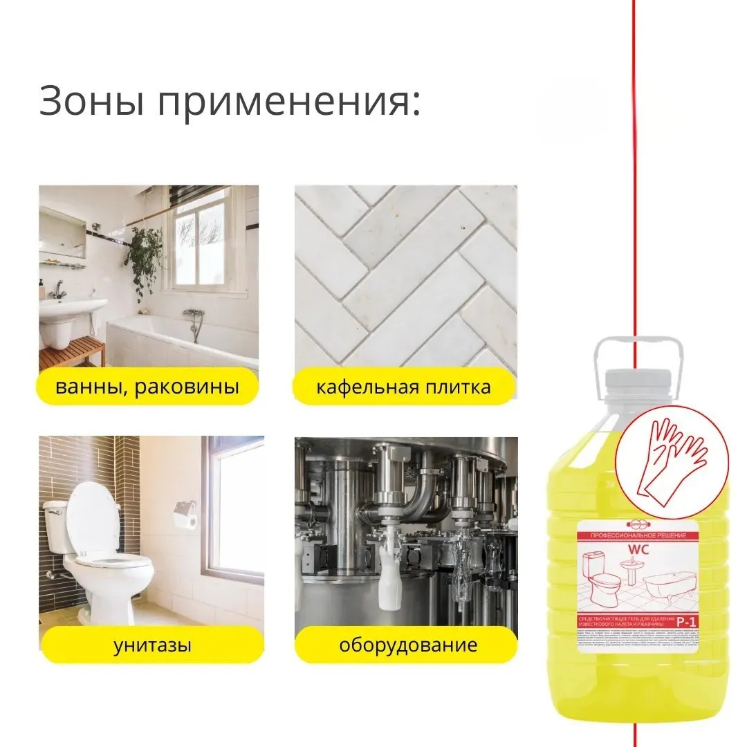 Средство чистящее Р-1 гель для удаления известкового налета и ржавчины, 5 л(*5,15 кг), РБ, арт Р-1 5000 Кислотное гелеобразное средство для очистки сантехнического оборудования. Подтвержденная антимикробная активность. |