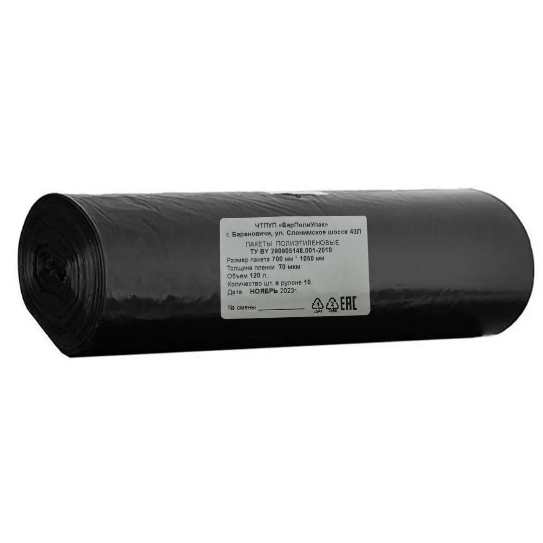 Мешки для мусора 120л 10 шт/рул, 70*105см 70мкм черный 20 рул/упак, арт MM12070-b