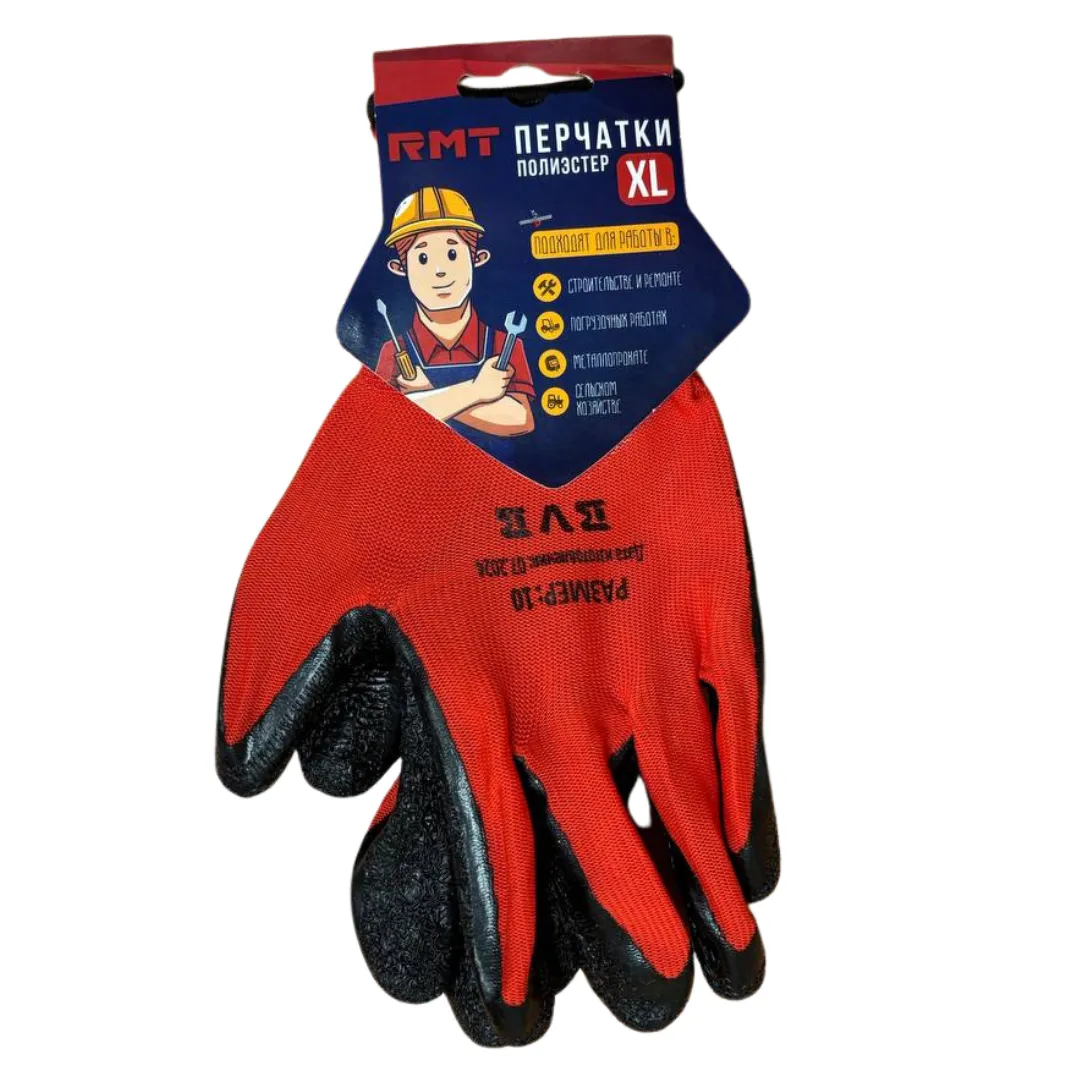 Универсальные перчатки из нейлона/полиэстера, 13 кл. вязки, цвет красный. С рельефным латексным покрытием черного цвета. Хорошая защита от истирания и разрыва. Перчатки с латексным покрытием характеризуются высокой устойчивостью перед холодом, проникновением воды, жидкостей на основе спиртов и ацетонов. Хорошо защищают от кислот и щелочей, являясь при этом гибкими и эластичными. При их эксплуатации рекомендуется избегать контакта с ароматическими растворителями, жирами, маслами, производными углеводородов.