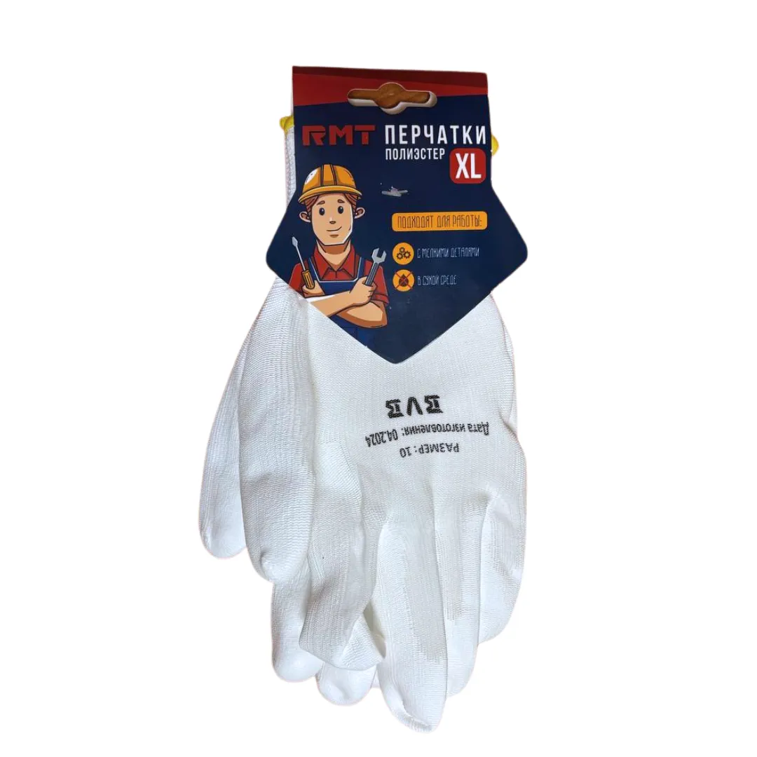 Перчатки из полиэстра с белым ПУ покрытием на ладони р-р 10 с СИНИМ карт. ярлыком, арт ППБ-ПУ-10-б |