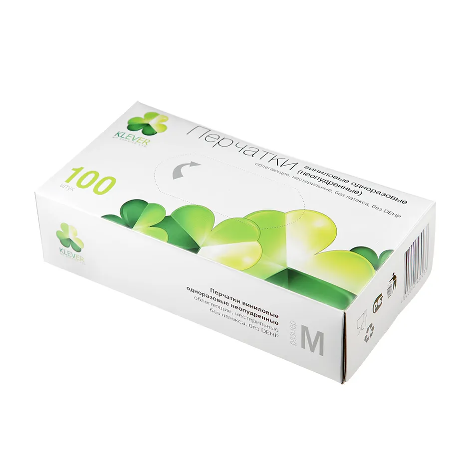 Перчатки виниловые неопудренные р. М KLEVER предназначены для медицинских манипуляций, защиты от химикатов, уборки помещений, работы с инвентарём. Применимы в торговой сфере, на промышленных объектах, в гостиницах, лабораториях, больницах, на фуд-кортах и т.д.