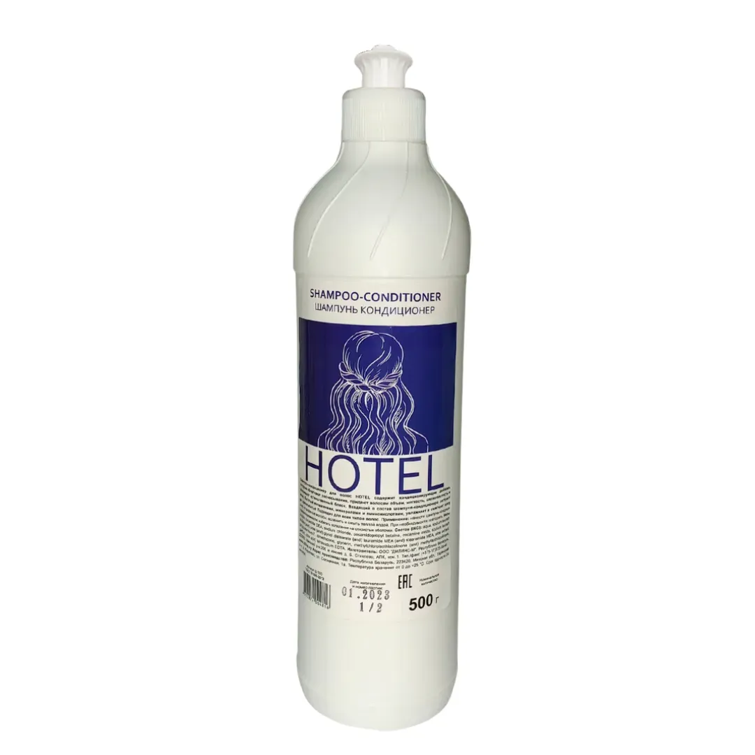 Густой шампунь-кондиционер HOTEL подходит для ежедневного применения. Он содержит кондиционирующие добавки, которые облегчают расчесывание, придают волосам объем, мягкость, шелковистость и усиливают естественный блеск. Входящий в состав шампуня-кондиционера экстракт-алоэ, богатый витаминами, минералами и аминокислотами, увлажняет и смягчает кожу во время мытья. Подходит для всех типов волос.