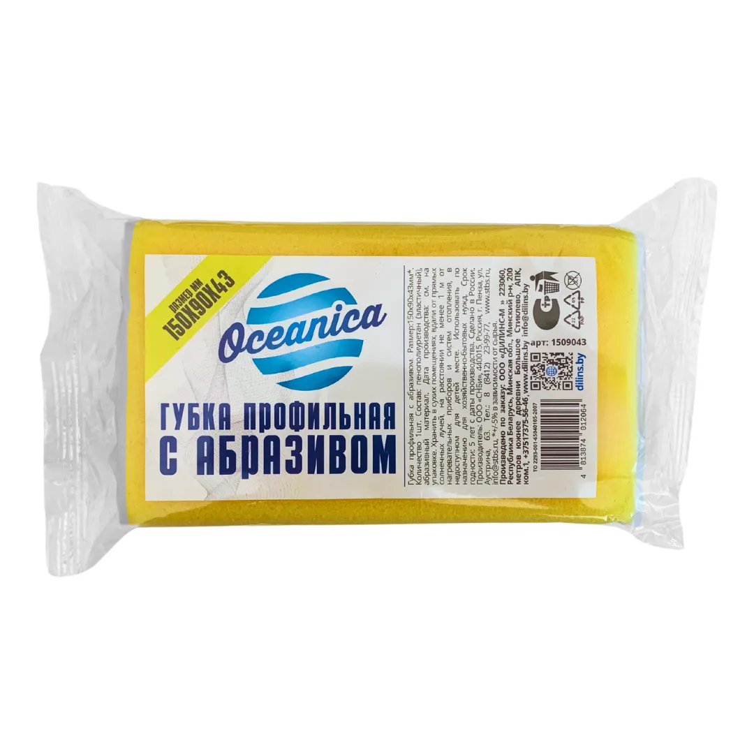 Губка профильная с абразивом Oceanica 1 шт/упак (150*90*43мм, 40 упак/пак), арт 1509043 Размер: 150х90х43 мм 1шт\упак. 40 упак\спайка |