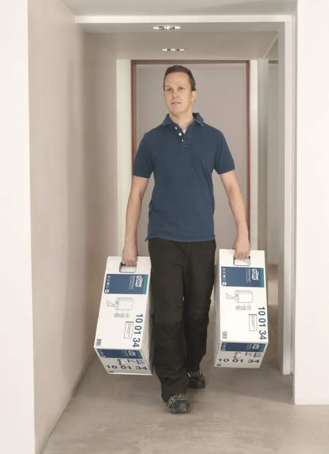 Подразделение Tork с вниманием относится к комфорту и здоровью персонала, оказывающего услуги по уборке, предлагая новую эргономичную упаковку Tork Easy Handling для удобства сотрудников клининговых компаний. Упаковка оснащена крепкими и удобными ручками, благодаря которым ее можно переносить одной рукой, а открыть короб можно без ножа, с помощью отрывного клапана. Пустые короба легко разобрать и сложить благодаря специальным направляющим, что значительно облегчает утилизацию.