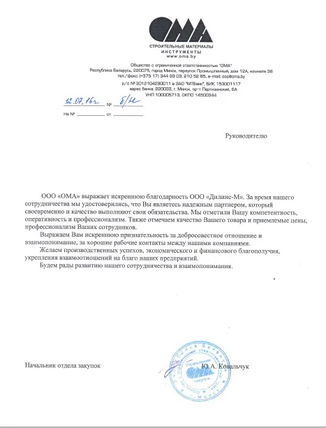 Дилинс-М высоко ценит своих клиентов и партнерские отношения. Ваш комфорт - наша задача. Благодарим за теплый отзыв о нашей работе.